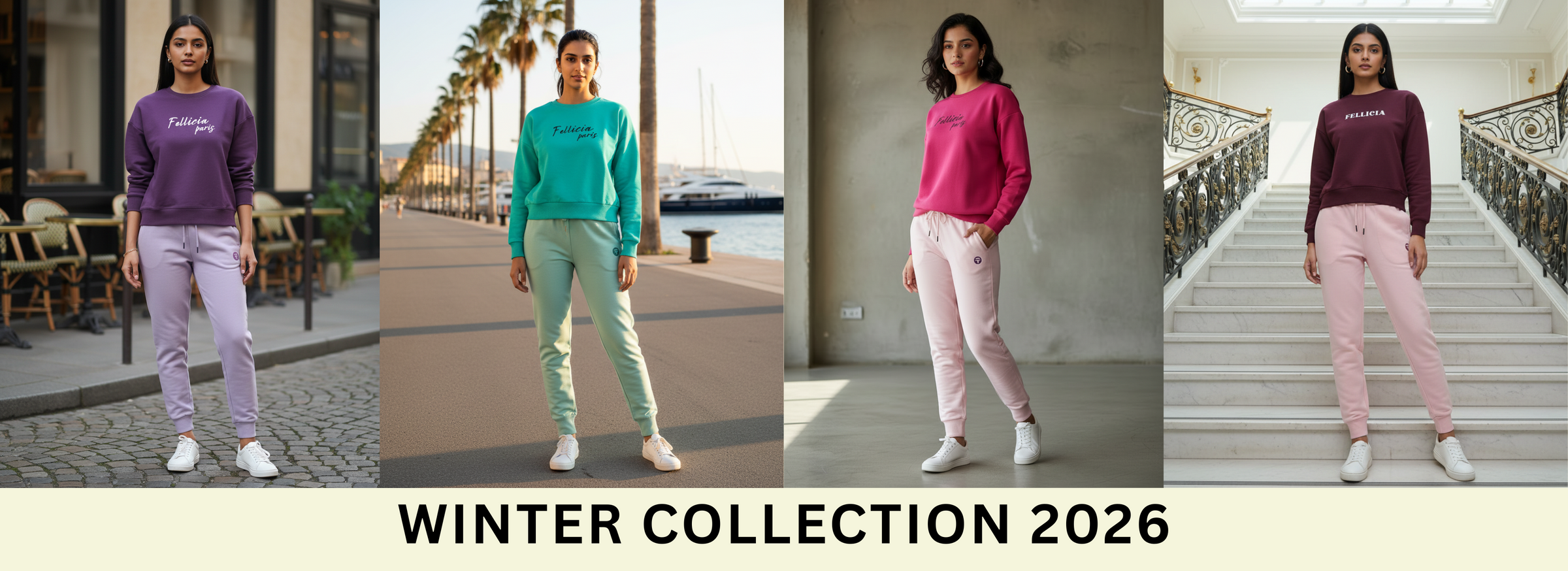 Women's Sweatshirt & Joggers QUIRKY Set (Fuchsia Pink–Beige)