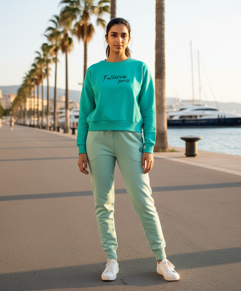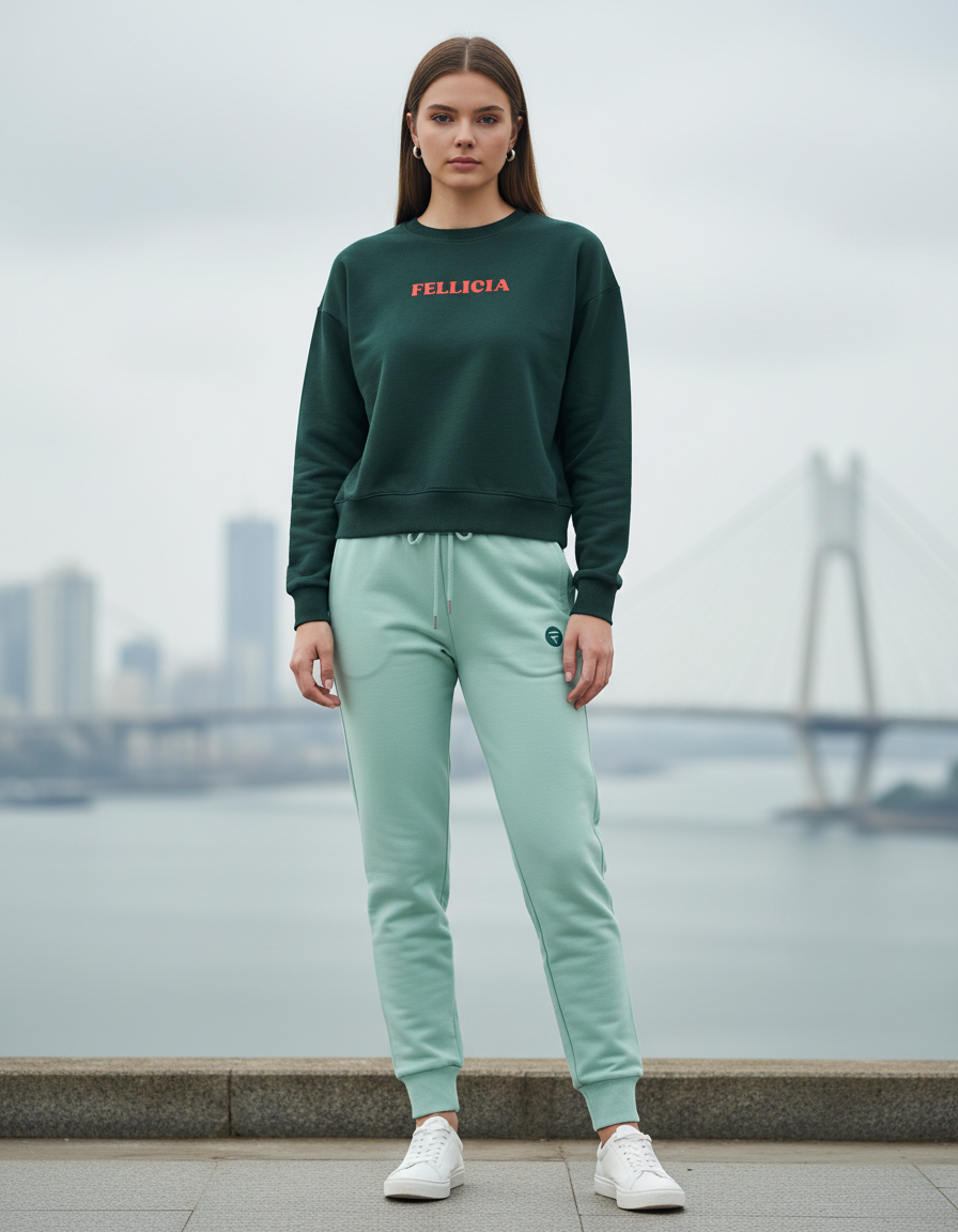 Women’s Sweatshirt & Joggers QUIRKY Set (Coral Green–Mint Green)
