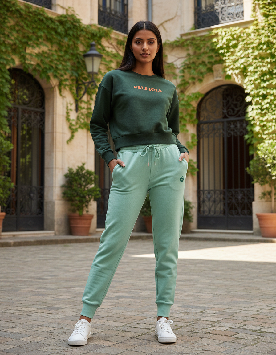 Women's Sweatshirt & Joggers QUIRKY Set (Olive–Mint Green)