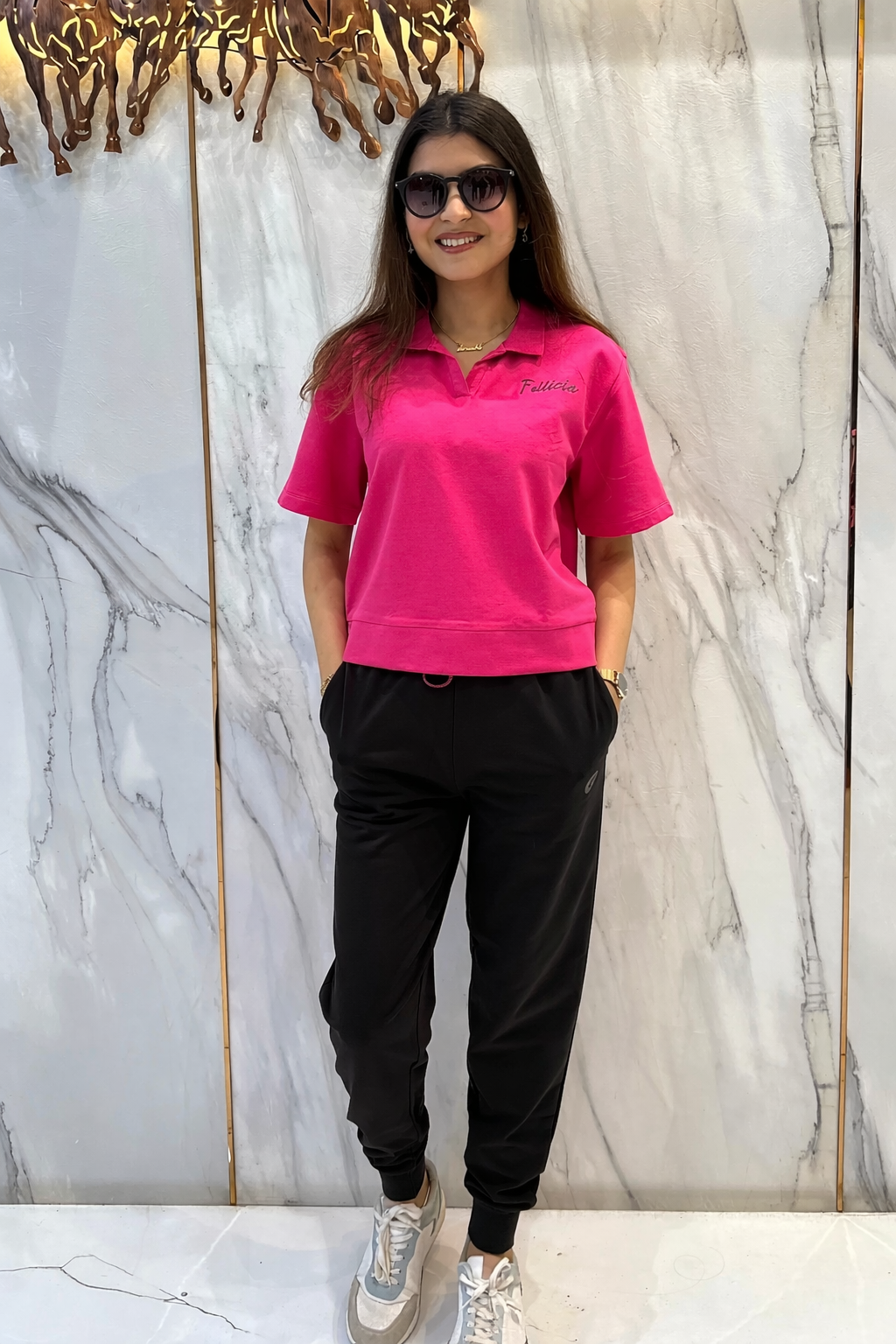 FUNKY Airport Polo Sweat-Tee & Jogger Set (Pink-Black)
