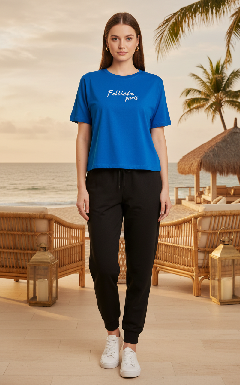 FUNKY Summer – Blue Sweat-Tee & Black Jogger Set